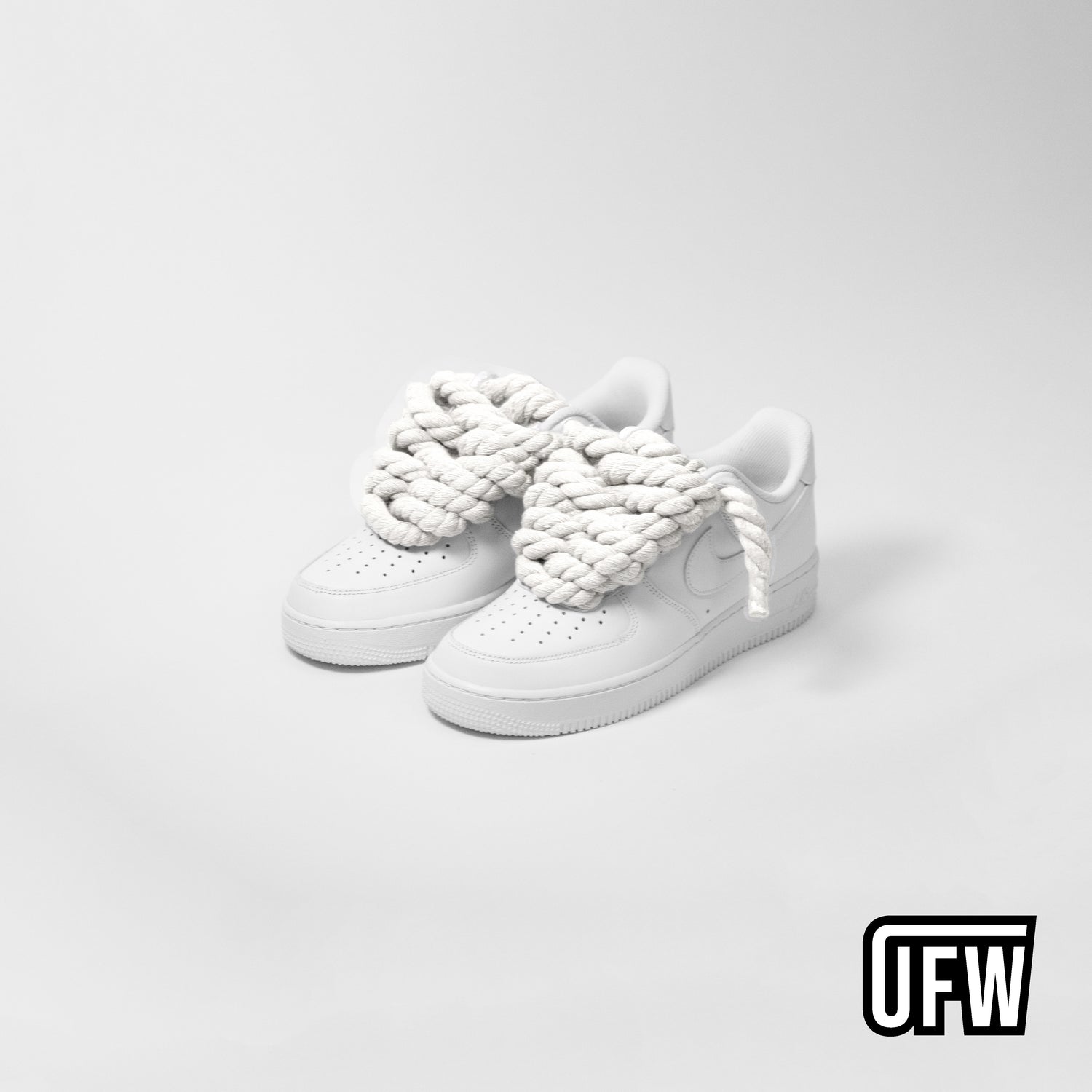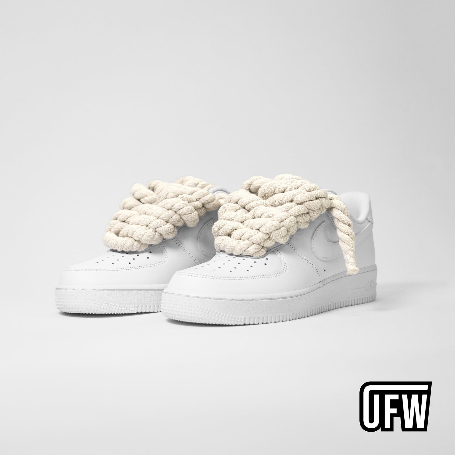 Wij bieden een afwerkings- of maatwerkservice speciaal voor jou! Voor speciale aanvragen kan je contact met ons opnemen. Mocht je jouw custom Air Force 1 met een andere kleur rope laces willen dan kun je bij je bestelling een opmerking toevoegen waarin je ons laat weten welke kleur je graag zou willen en dan gaan wij voor je aan de slag.