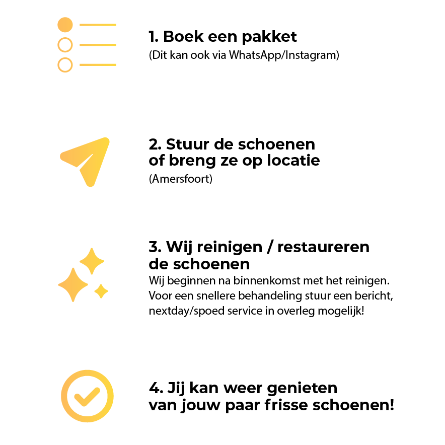 Een 'opfrissertje' is bedoelt voor sneakers die kleine vuiligheden hebben en waar een grondige reiniging overbodig is of waar recent een grondige reiniging is uitgevoerd en alleen onderhoud nodig is.